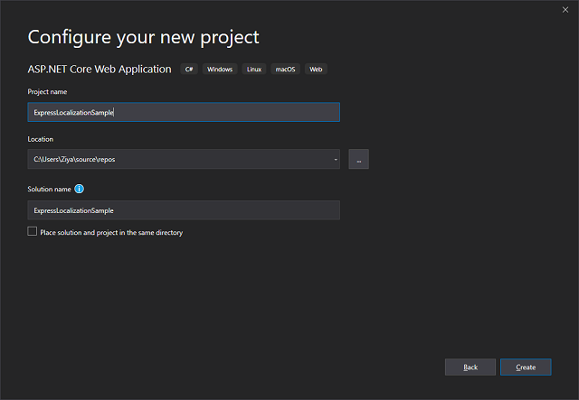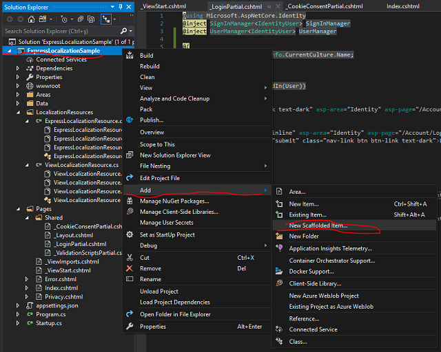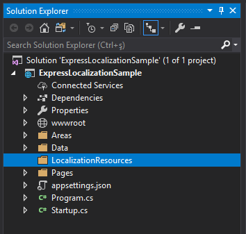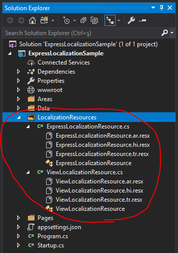 namespace ExpressLocalizationSample.LocalizationResources { public class ExpressLocalizationResource { } } We will use these two classes to pass resource type to the express localization method.