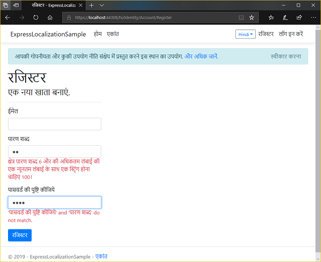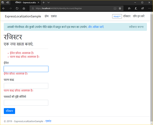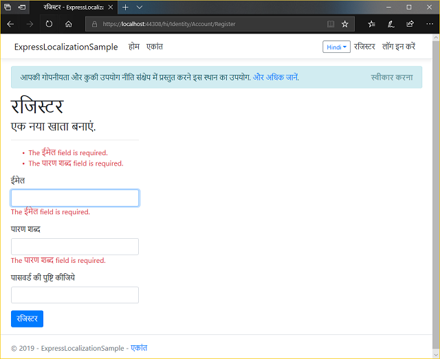 ModelBindingand Identity messages (UpdateLazZiya.ExpressLocalizationto v2.0.1)