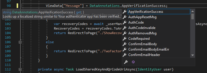 @CultureResource.UserName Since public key names are strongly typed, we can't use spaces or dots for the key name. Public keys are useful to localize data annotations and error messages that is coming from the backend end (c# codes). But it is not so handy to localize view texts (like titles, headers, menus and other page contents), because this kind of text is not predicted before and may change a lot during development. So here we came to localizing using view resources without strongly typed key names.
