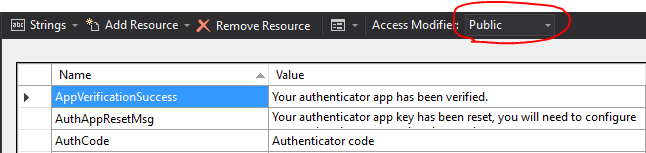 - Resource files with public access modifiers