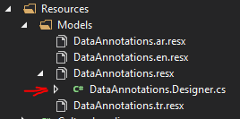 Using view resources for localization requires to create one resource file for each culture for each view, so if we have three cultures (en, tr and ar) each view must have three resource files, and the resources file structure must reflect the related view file structure.